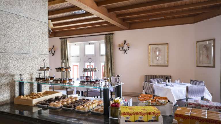 Die gastronomischen Einrichtungen umfassen ein Café, eine Bar und ein Nichtraucherrestaurant mit Klimaanlage. Angeboten werden Halbpension und Vollpension, wobei Frühstück in Form eines reichhaltigen Buffets serviert wird. Gäste haben die Möglichkeit, à la carte zum Mittag- und Abendessen zu wählen, inklusive Diätgerichten und speziellen Kindermenüs.