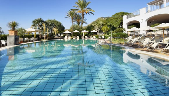Das Hotel Parco Smeraldo Terme **** liegt direkt am Marontistrand.Es ist von einem üppigen subtropischen Garten umgeben, der den Thermalpool mit seiner Sonnenterrasse einrahmt. Von hier aus erreicht man direkt die überdachte, mit der Thermalanlage verbundene Wellnessoase,den Strand und das Meer. Kur- Wellness und Beautyabteilung. Bar, Restaurant, Terrasse mit Meerblick, Friseur, Tennisplatz, Privatstrand mit Liegen und Sonnenschirmen. Im Preis enthalten: Internet -Point . Wi-Fi , Kunstrasentennisplatz, Privatstrand mit Liegen und Sonnenschirm, Wellnessozse 'Corallium SPA', Aussenthermalpool