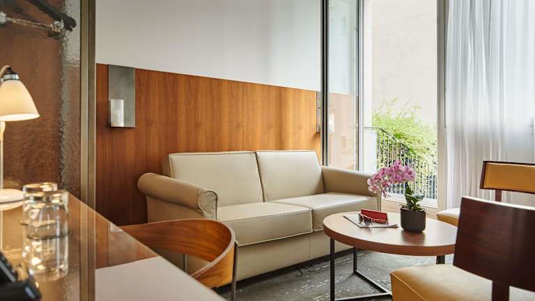 Die Zimmer sind klimatisiert und verfügen über modernen Komfort wie ein Doppelbett, Minibar, Safe, Nespresso-Kaffeemaschine sowie einen Flachbild-TV. Einige Suiten bieten eine eigene Terrasse mit Blick auf die Dächer von Paris. Die Badezimmer sind mit Dusche und Badewanne ausgestattet und bieten Kosmetikartikel sowie Hausschuhe.