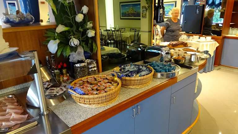 Das Frühstück wird in Buffetform angeboten, mit kontinentalen oder italienischen Optionen. Weiterhin gibt es ein Restaurant, in dem die Gäste ihre Mahlzeiten einnehmen können, sowie eine Bar, die Getränke bietet.