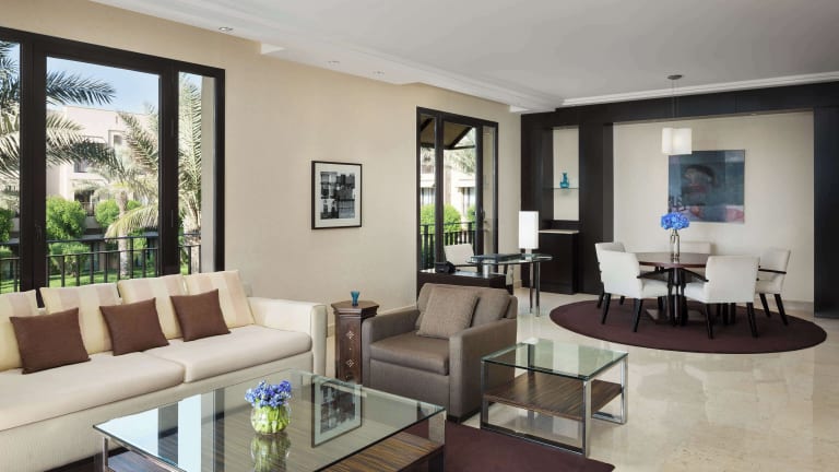Das Hotel bietet drei Restaurants, die mediterrane, andalusische und nahöstliche Küche servieren. In der Lounge werden exklusive Tees, leichte Mahlzeiten und köstliche Guetzli angeboten. Zusätzlich gibt es die Möglichkeit, Frühstück im Zimmer zu bestellen.