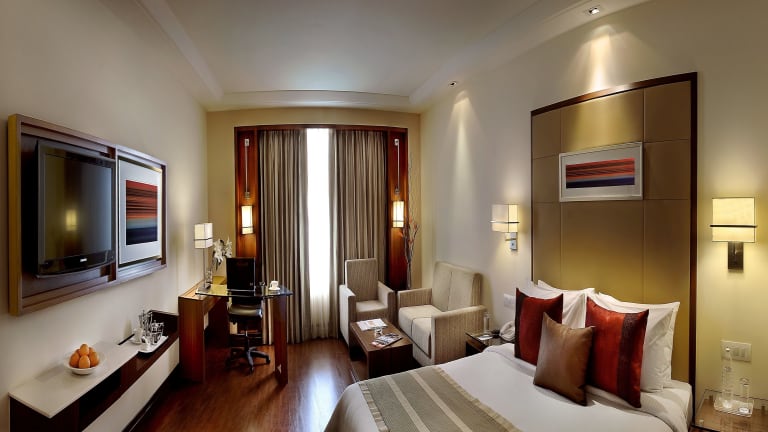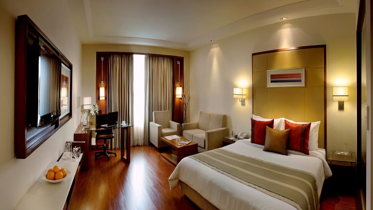 Die Zimmer im Park Inn Gurgaon sind hell und geräumig, ausgestattet mit Hartholzböden und deckenhohen Fenstern. Sie verfügen über ein Doppelbett, Klimaanlage, einen Safe, eine Minibar, einen Schreibtisch, einen Minikühlschrank sowie eine Tee-/Kaffeemaschine. Zusätzliche Annehmlichkeiten sind ein Fernseher mit Satellitenempfang, WiFi, ein Bügelset und ein Haartrockner. Zudem sind Badezimmer mit Dusche und Badewanne ausgestattet.