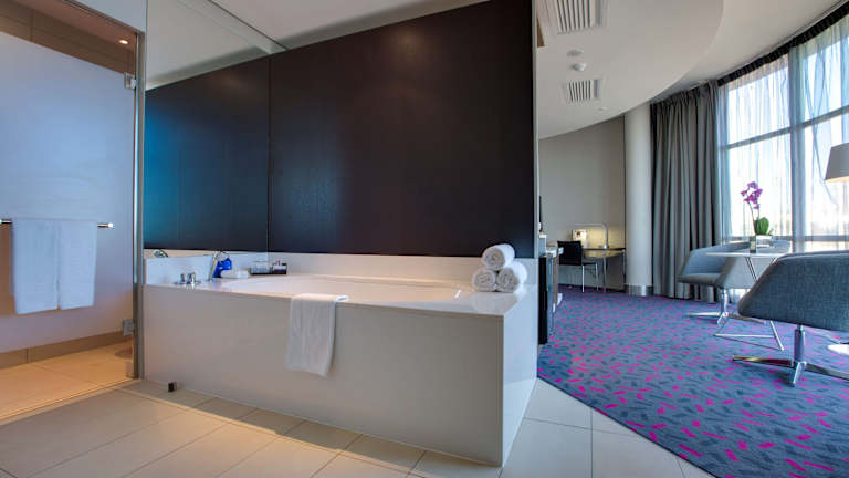 Die Zimmer sind mit Klimaanlage, individuell regulierbarer Heizung, Doppel- oder Kingsize-Betten ausgestattet. Weitere Annehmlichkeiten sind ein Safe, eine Minibar, ein Schreibtisch, ein Minikühlschrank und eine Tee-/Kaffeemaschine. Ein TV-Gerät mit Satelliten-/Kabelempfang, Telefon und kostenloses Wifi sind ebenfalls vorhanden. Einige Zimmer bieten behindertengerechte Badezimmer.