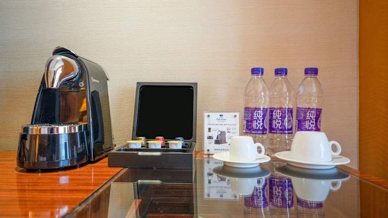 Die Verpflegung im Hotel umfasst ein Frühstücksbuffet, das täglich von 06:30 bis 10:30 Uhr bereitgestellt wird. Das Hauptrestaurant "Bloo Dining" bietet asiatische und internationale Küche. Zusätzlich gibt es ein Spezialitätenrestaurant "Ooodle" mit chinesischer und japanischer Küche. Die "First Lounge Bar" bietet leichte Erfrischungen und Getränke.