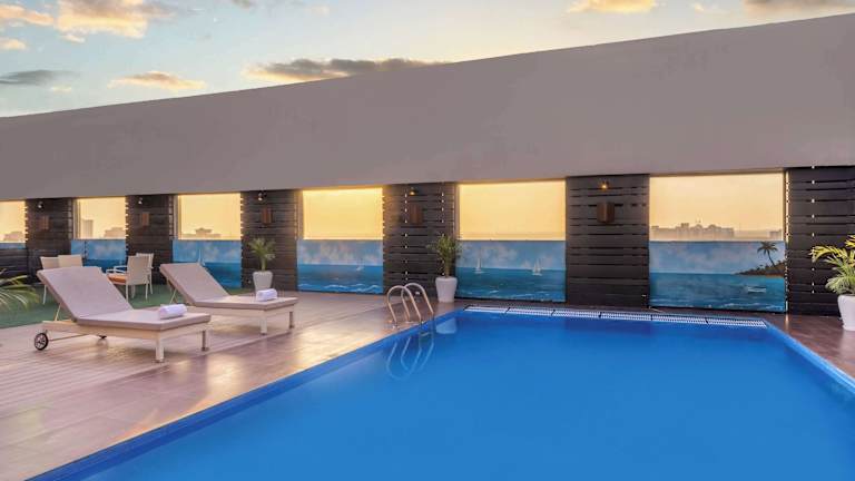 Das Hotel bietet 78 Zimmer auf 6 Etagen, die über einen Aufzug und eine Rezeption zugänglich sind. Zu den Einrichtungen zählen eine Gepäckaufbewahrung, ein Safes sowie ein TV-Raum. Kostenfreies WLAN ist in den öffentlichen Bereichen verfügbar. Es stehen behindertengerechte Annehmlichkeiten zur Verfügung. Eine Sonnenterrasse und ein Pool im Freien runden das Angebot ab.