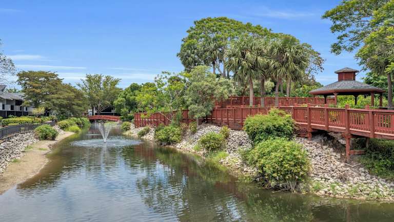 Die Anlage liegt mitten in einem herrlichen Parkgelände mit Seen, nur etwa 10 Autominuten vom eleganten und repräsentativen Stadtzentrum Naples entfernt. Den Strand erreicht man in wenigen Fahrminuten. In unmittelbarer Nähe gibt es Geschäfte und Restaurants.