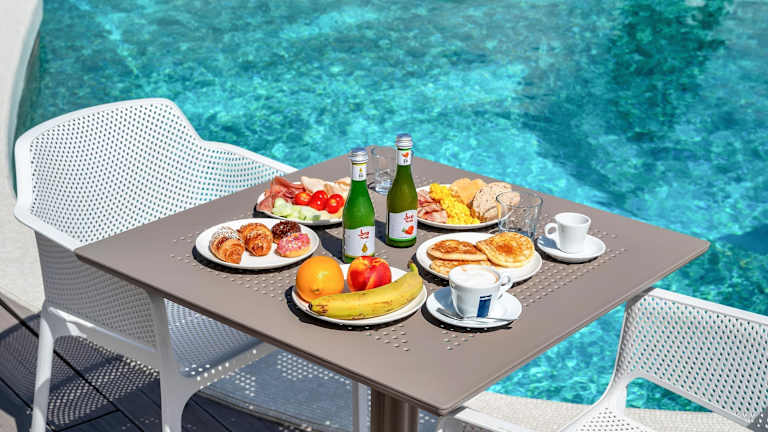 Die gastronomischen Einrichtungen umfassen einen Speiseraum, einen Frühstückssaal und eine Bar. Gäste bedienen sich am reichhaltigen Frühstücksbuffet und können zwischen Übernachtung mit Frühstück, Halbpension und Vollpension wählen. Diverse Gerichte à la carte stehen zudem für das Mittag- und Abendessen zur Verfügung, darunter auch spezielle Diätgerichte.