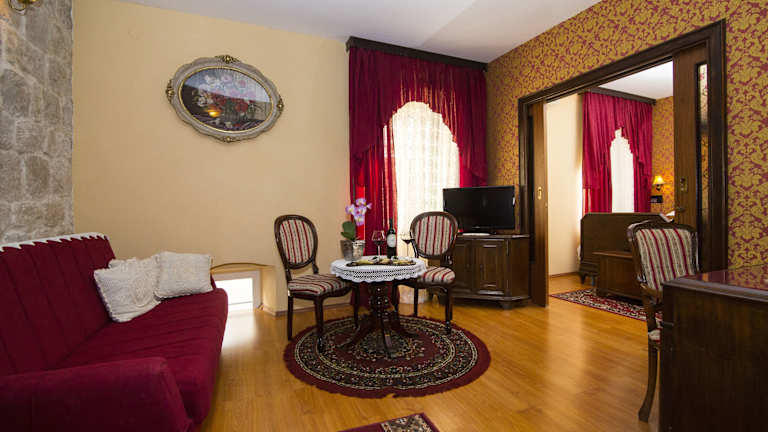 Die Zimmer sind mit Klimaanlage und Heizung ausgestattet. Die Mehrheit der Zimmer verfügt über einen Balkon. Ausserdem sind ein Queensizebett und ein Sofabett vorhanden, und Kinderbetten können bereitgestellt werden. Weitere Annehmlichkeiten sind ein Safe, eine Minibar, ein Kühlschrank, sowie eine Tee-/Kaffeekocher, Direktwahltelefon, Sat-TV, ein DVD-Player und WiFi. Die Badezimmer bieten Dusche und Badewanne, Haartrockner und Kosmetikspiegel.