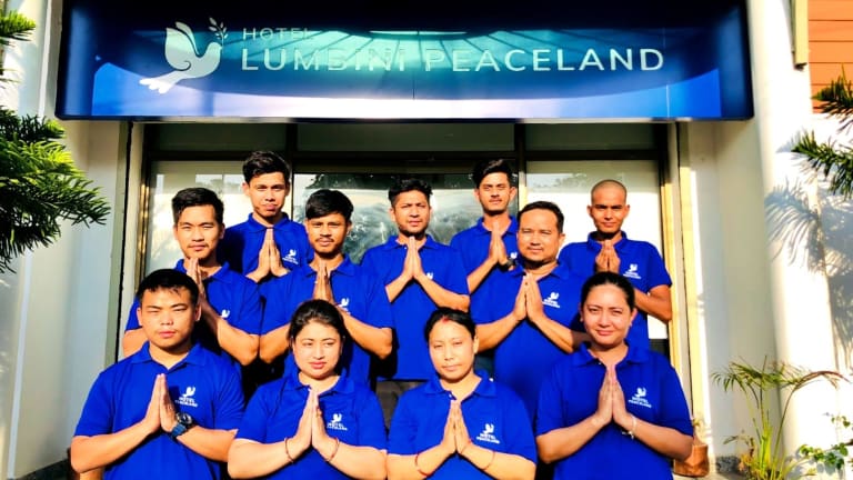 Das Hotel Peaceland Lumbini ist eine ideale Unterkunft für Reisende, die Lumbini und seine Sehenswürdigkeiten erkunden möchten. Mit komfortablen Zimmern, einem freundlichen Service und verschiedenen gastronomischen Optionen bietet das Hotel alles, was Sie für einen angenehmen Aufenthalt benötigen. Genießen Sie die ruhige Atmosphäre des Gartens, entspannen Sie auf der Terrasse oder erkunden Sie die Umgebung mit einem Fahrrad vom Hotel aus.