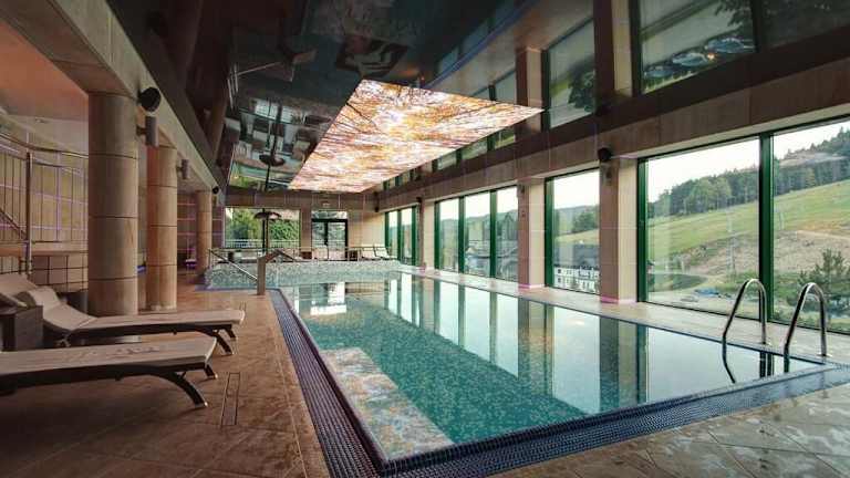 Das Wellnesscenter im Hotel Pegaz lädt zum Entspannen ein. Hier finden Sie eine Sauna, ein Dampfbad und einen Whirlpool, in denen Sie den Alltagsstress hinter sich lassen können. Genießen Sie auch eine wohltuende Massage oder eine kosmetische Anwendung, um sich rundum verwöhnen zu lassen. Der Innenpool bietet zudem eine herrliche Aussicht auf die Skipisten, während Sie schwimmen.