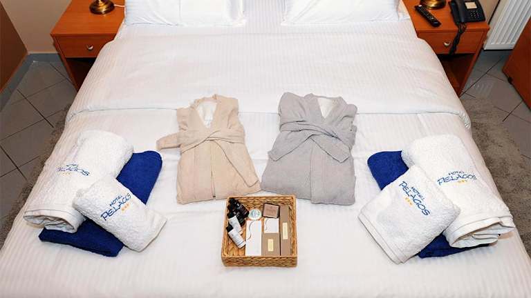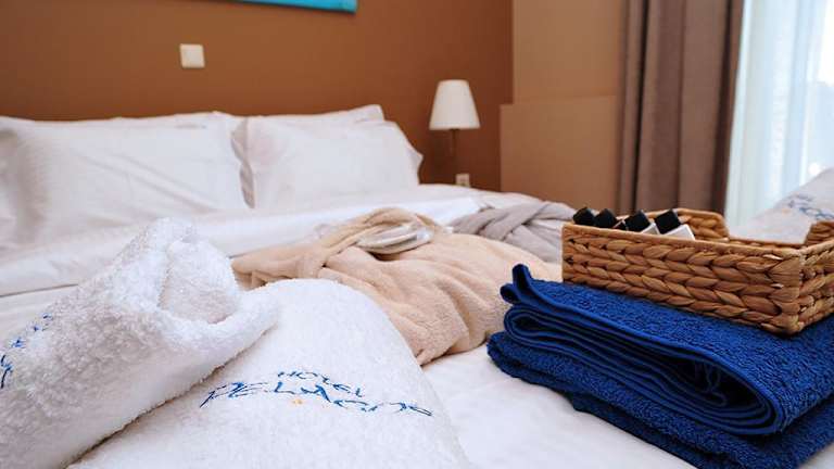 Die Zimmer im Hotel Pelagos Studios sind mit einem Kleiderschrank, einem Flachbild-TV sowie einem eigenen Badezimmer ausgestattet. Alle Zimmer verfügen über einen Balkon, einige bieten zusätzlich Meerblick. Bettwäsche und Handtücher sind ebenfalls vorhanden. Es gibt ein Familienzimmer.