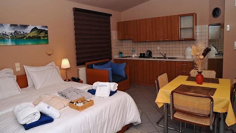 Das Hotel Pelagos Studios bietet eine heimelige Atmosphäre und überzeugt mit klimatisierten Zimmern, kostenlosem Wifi sowie einem Garten. Eine Terrasse und ein kostenloser Privatparkplatz stehen den Gästen zur Verfügung, die mit dem Auto anreisen. Die Mitarbeitenden an der 24-Stunden-Rezeption geben gerne Auskunft und Empfehlungen.