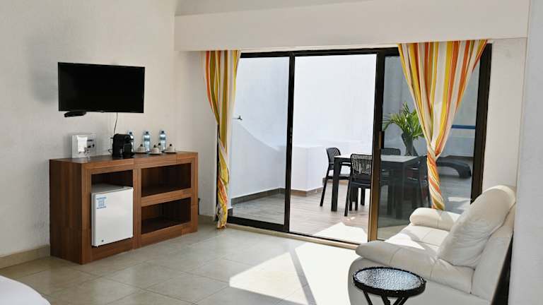 In den klimatisierten Zimmern sorgen ein Ventilator und eine Heizung für angenehmes Raumklima. Balkone sind in den meisten Zimmern vorhanden. Zusätzliche Annehmlichkeiten umfassen einen Safe, eine Minibar ohne Gebühr, einen Kühlschrank, ein Bügelset, ein Telefon mit Direktwahl, ein TV-Gerät sowie kostenloses Wifi. Die Badezimmer verfügen über eine Dusche oder Badewanne, einen Haartrockner und ein Telefon. Es gibt Familien- und Nichtraucherzimmer.