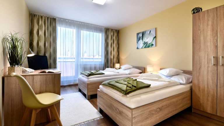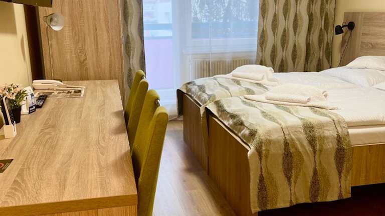 Die Zimmer im Hotel Pelikán sind mit einem Schreibtisch, einem Flachbild-TV, einem eigenen Badezimmer, Bettwäsche und Handtüchern ausgestattet. Ausgewählte Zimmer verfügen zudem über eine Küchenzeile mit einem Kühlschrank. Alle Gästezimmer haben einen Kleiderschrank.