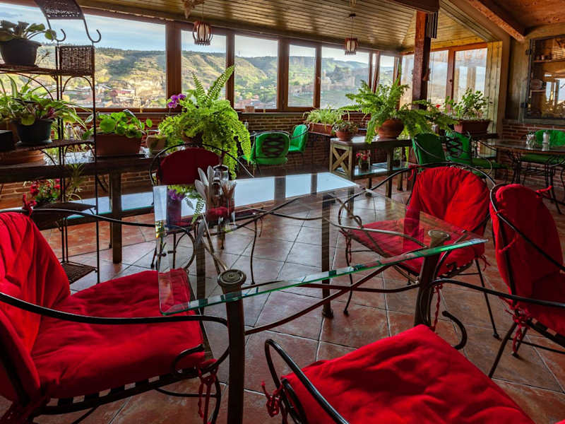 Morgens wird im Hotel ein Frühstücksbuffet angeboten. Das Restaurant verwöhnt die Gäste mit georgischer und europäischer Küche. Weitere gastronomische Einrichtungen sind nur 10 Gehminuten vom Hotel entfernt.