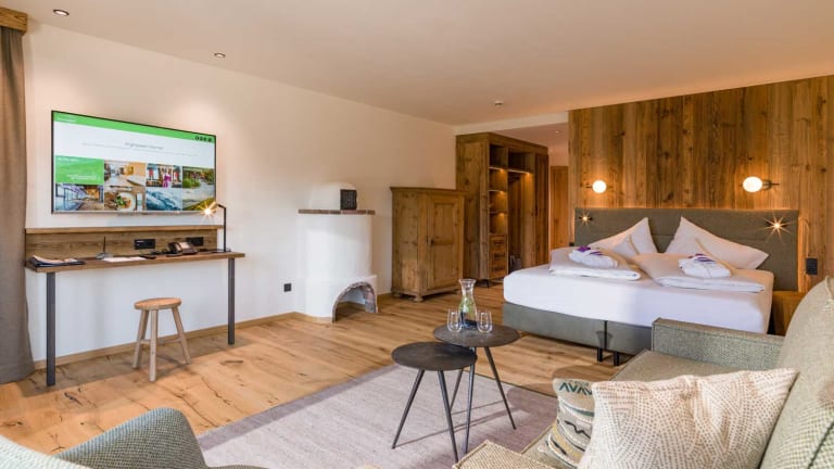 Fühlen Sie sich wohl und geniessen Sie erholsame Stunden in Ihrem Urlaub. Alle Zimmer sind sonnendurchflutet, mit heimische Hölzern, natürlichen Materialien und angenehmen Farben gestaltet und haben einen atemberaubenden Blick auf die Berge!