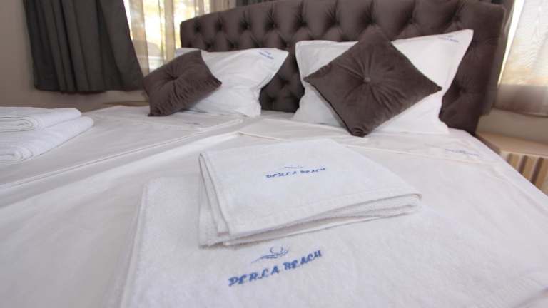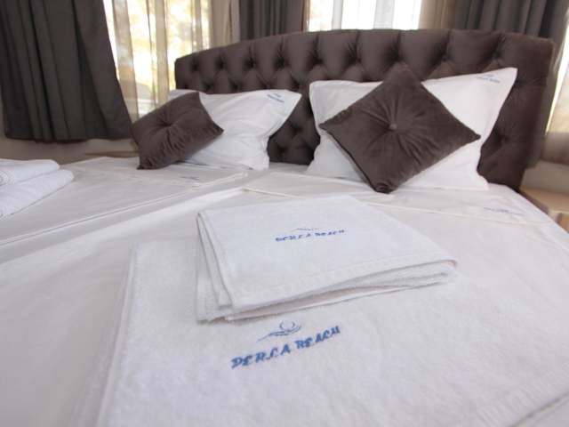 Die Zimmer im Hotel PERLA BEACH sind komfortabel eingerichtet und verfügen über einen Balkon sowie eine Terrasse mit Meerblick. Die Ausstattung umfasst Klimaanlage, einen Schreibtisch, einen Flachbild-TV, einen Kühlschrank sowie ein eigenes Badezimmer. Bettwäsche und Handtücher sind ebenfalls vorhanden.