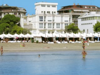 Das Hotel Petit Palais befindet sich am berühmten Strand des Excelsiors im Kongressviertel des Lidos in Venedig. Die Umgebung umfasst eine Bushaltestelle in der Nähe sowie einen Bahnhof, der ca. 80 m entfernt ist. Zu den Entfernungen zählen der Golfplatz in etwa 3 km, der internationale Flughafen Marco Polo in rund 12 km und der Flughafen Treviso in ca. 40 km. Auch der Markusplatz ist mit dem Boot in etwa 15 Minuten erreichbar.