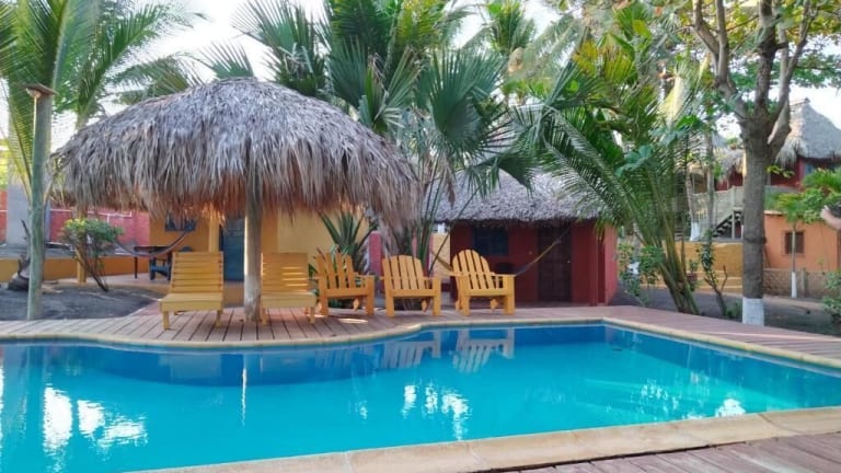 Das Hotel Pez de Oro befindet sich in Monterrico, nur 80 Meter vom Strand Playa de Monterrico entfernt. Die Anlage ist von einem Garten umgeben und bietet direkten Zugang zu einem eigenen Strandbereich.