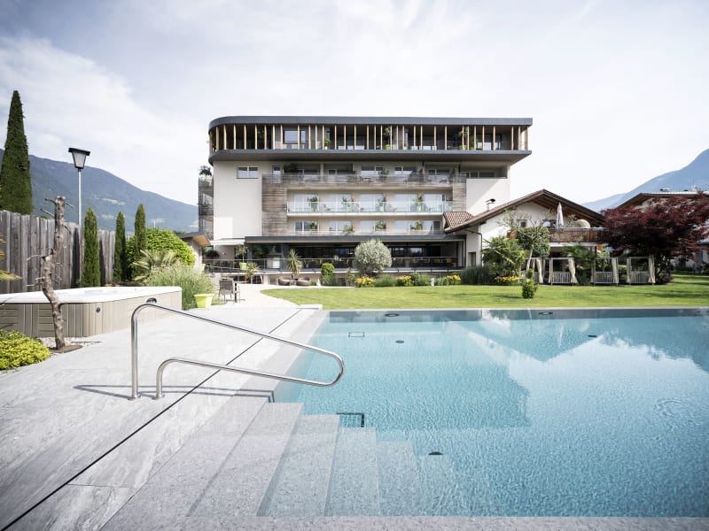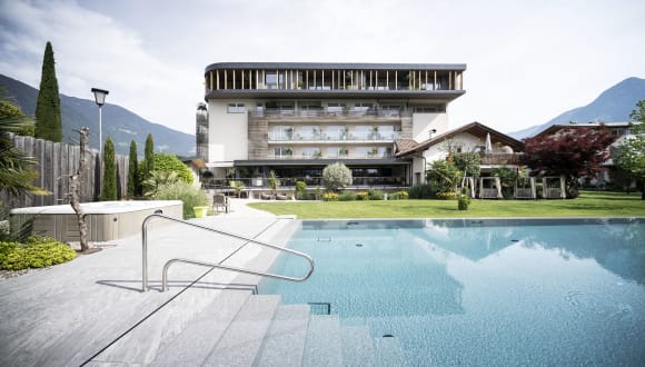 Verbringen Sie in unserem 4 Sterne Hotel Pfeiss wunderbare Tage im idyllischen Lana und erleben Sie Genuss in all seinen Facetten! Egal ob sie auf der Suche nach Ruhe und Entspannung sind, die Natur genießen oder ihren Urlaub am liebsten aktiv in der frischen Luft verbringen wollen – wir vom 4 Sterne Hotel Pfeiss sind stets darum bemüht, Ihren Urlaub so angenehm wie möglich zu gestalten! Wir legen Wert darauf, der bunten Vielfältigkeit an Urlaubswünschen gerecht zu werden und unseren Gästen eine angenehme Zeit zum Genießen zu ermöglichen. Mitten in den Obstwiesen des Auenlandes Niederlana gelegen, profiliert sich unser 4 Sterne Hotel als idealer Ausgangspunkt zum Radeln, Biken, Wandern und Bergsteigen – Gastgeber Paul Überbacher steht Ihnen auf Wunsch gerne zur Seite und empfiehlt Ihnen einige der schönsten Wanderwege in Lana und Umgebung. Für Entspannung und Erholung sorgt unser neuer Wellnessbereich samt Liegewiese mit beheizter Infinity-Pool. Außerdem wird Sie unser Küchenchef Daniel Überbacher mit innovativen CookArt-Kreationen verzaubern, die im Sinne unserer Hotel-Philosophie auf der Qualität regionaler Produkte basieren.