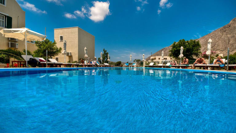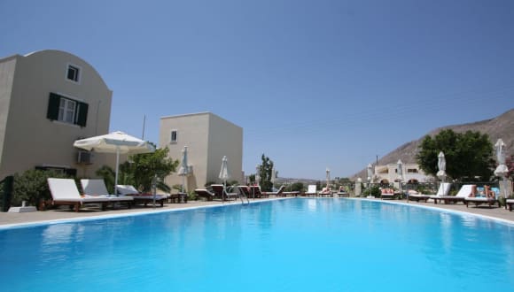 Das Hotel Phevos Villa in Perissa bietet eine ideale Unterkunft für Selbstversorger, die einen entspannten und komfortablen Urlaub in der Nähe des berühmten schwarzen Strandes von Perissa verbringen möchten. Mit einem großen Pool, einer Snackbar am Pool und gut ausgestatteten Studios, die auf einen Balkon oder eine Gemeinschaftsterrasse öffnen, bietet das Hotel alles, was Sie für einen erholsamen Aufenthalt benötigen. Die zentrale Lage ermöglicht es Ihnen, die Bars und Restaurants in der Ortschaft Perissa zu erkunden und Ausflüge in die lebendige Stadt Fira zu unternehmen.
