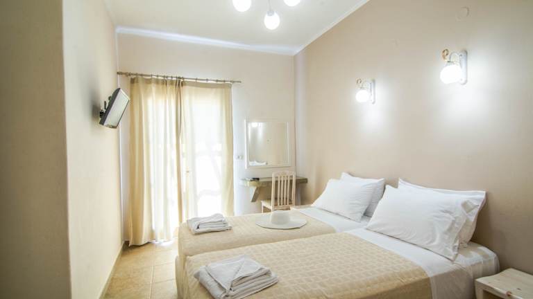 Das Hotel verfügt über 18 Zimmer, die alle mit einer Klimaanlage ausgestattet sind. Die meisten Zimmer verfügen über einen Balkon oder eine Terrasse. Zur Ausstattung gehören ein Doppelbett, ein Kühlschrank, ein Herd, eine Tee-/Kaffeemaschine, ein Telefon, ein Flachbildfernseher mit Kabelempfang und kostenfreies WLAN. Jedes Zimmer verfügt zudem über ein eigenes Badezimmer mit Dusche und Haartrockner.