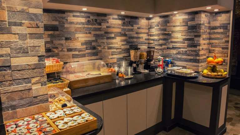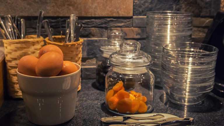 Jeden Morgen stärken Sie sich am Frühstücksbuffet. Zudem besteht die Möglichkeit, Essen in die Unterkunft liefern zu lassen.