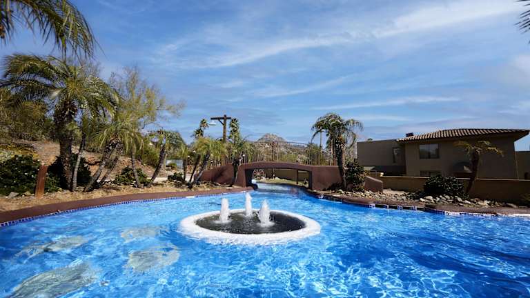 Das Hotel schmiegt sich an die Hänge der Phoenix North Mountains und ist umgeben von der Sonora-Wüste. Die Umgebung bietet verschiedene Restaurants und Einkaufsgelegenheiten, wie das Biltmore Fashion Park in rund 10 min Fahrtzeit. Weitere Attraktionen in der Nähe sind der Desert Botanical Garden, der Zoo von Phoenix und Chase Field, alle in wenigen Fahrminuten erreichbar. Das Zentrum von Phoenix ist in etwa 10 min mit dem Auto erreichbar, und der internationale Flughafen Phoenix Sky Harbor ist ca. 14 km entfernt.