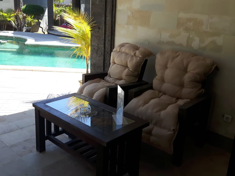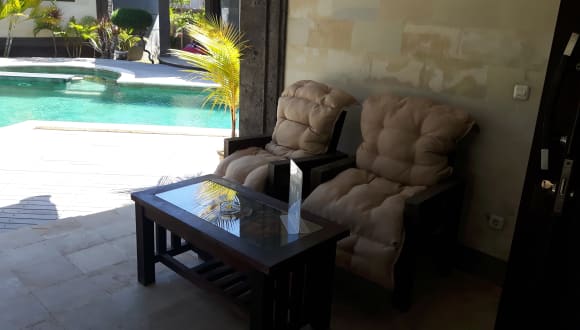 Das Pondok Baruna Frangipani bietet moderne und gemütliche Zimmer, die über eine eigene Terrasse mit einem Sitzbereich im Freien verfügen. Es steht ein Wäsche- und Zimmerservice zur Verfügung.
