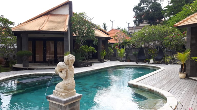 Das Hotel Pondok Baruna Frangipani befindet sich nur einen kurzen Spaziergang vom Strand Jungut Batu in Lembongan entfernt. Der Strand Sanur ist mit einer 30-minütigen Bootsfahrt erreichbar. Die Mitarbeiter des Hotels führen Gäste gerne durch das nahegelegene Dorf Jungut Batu.