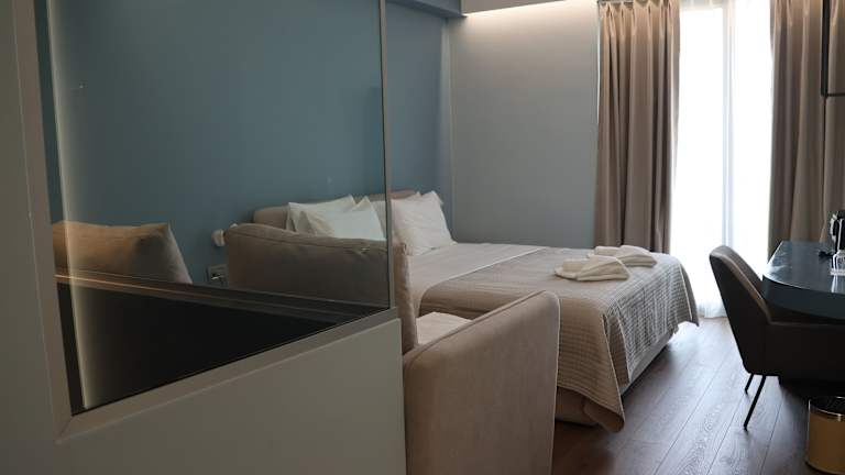 Jedes Zimmer ist mit einem Schreibtisch, einem Flachbild-TV sowie einem Safe ausgestattet. Bestimmte Zimmer verfügen über einen Balkon, während andere einen Blick auf das Meer bieten. Zur Zimmerausstattung gehören auch Bettwäsche und Handtücher.