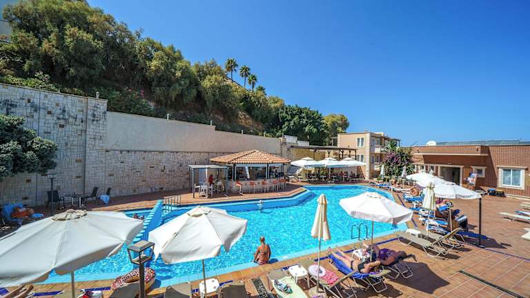 Die Gäste des Hotels können die Sonne auf der Sonnenterrasse genießen oder sich im großen Außenpool erfrischen. Ein separater Kinderpool sorgt für Unterhaltung für die kleinen Gäste. Das Hotel bietet auch ein Unterhaltungsprogramm mit Animation und Live-Musik.