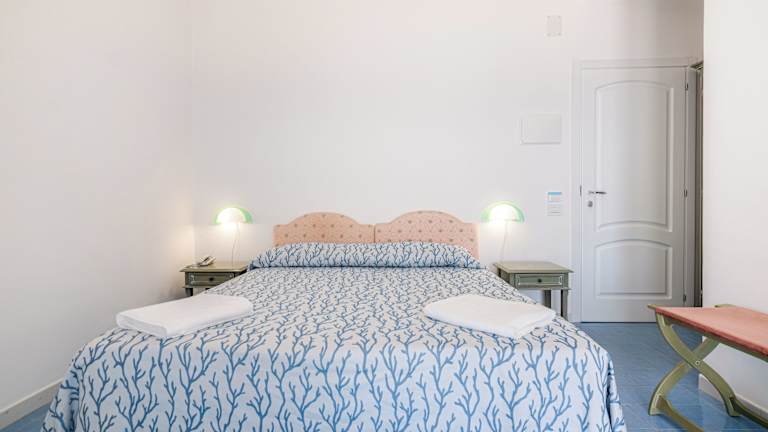 Die klassisch eingerichteten Zimmer des Hotels sind klimatisiert und verfügen über einen TV, ein eigenes Bad sowie die Bequemlichkeit eines Balkon oder Terrasse mit Meerblick. Ausstattungsmerkmale wie Safe, Minibar, Telefon, TV-Gerät und kostenfreies Wifi sorgen für eine angenehme Atmosphäre. Bäder sind mit Dusche und Haartrockner ausgestattet. Das Hotel bietet sowohl Familien- als auch Nichtraucherzimmer an.