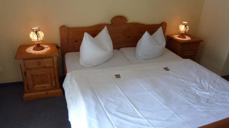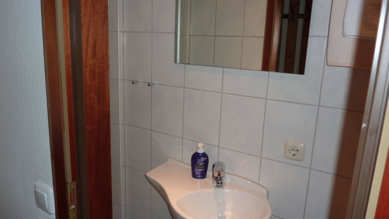Kleines Badezimmer und knackendes Bett