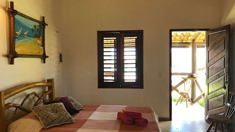 Die Bungalows im Pousada Beleza Das Ondas bieten eine helle und fröhliche Unterkunft mit viel Tageslicht. Ausgestattet sind die Zimmer mit einem TV, einem eigenen Balkon und Hängematten, was zur entspannten Atmosphäre beiträgt.