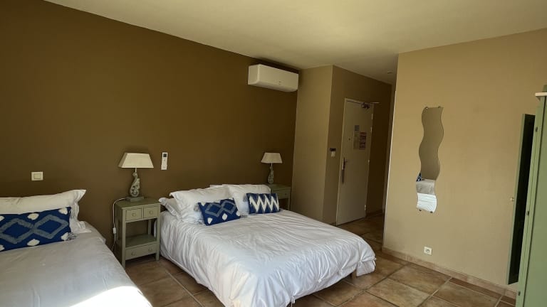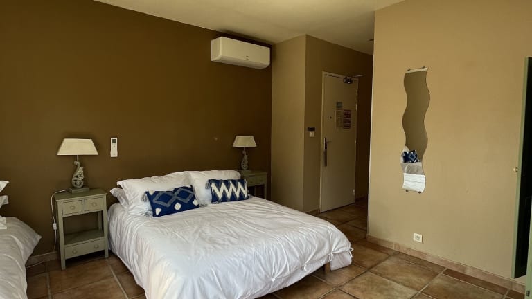 Das Hotel Princesse D'Azur bietet schallisolierte und klimatisierte Zimmer, die im typisch provenzalischen Dekor gestaltet sind. Die Unterkunft legt Wert auf Sauberkeit und Sicherheit. Es sind Nichtraucherzimmer vorhanden und das Hotel bietet eine hegliche, einladende Atmosphäre.