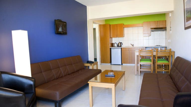 Die komfortablen familienfreundlichen Apartment verfügen über ein oder zwei Schlafzimmer und sind mit Klimaanlage im Schlafzimmer, Fernseher, Kitchenette mit Kochplatte, Mikrowelle oder Mini-Ofen, Kühlschrank, Wasserkocher und Toaster, sowie Badezimmer mit Badewanne oder Dusche und WC und einem möblierten Balkon, Telefon und Föhn ausgestattet.