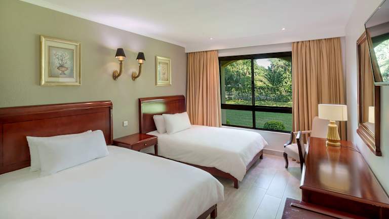 Die Zimmer sind klimatisiert und ausgestattet mit Doppelbetten oder Kingsize-Betten. Sie verfügen über einen Safe, Kühlschrank, Tee-/Kaffeemaschine, Telefon, TV-Gerät und kostenfreies Wifi. Im Badezimmer stehen eine Dusche und Badewanne zur Verfügung, sowie ein Haartrockner und Kosmetikartikel.