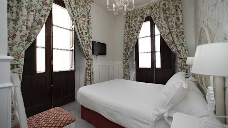 Die Zimmer im Puerta Sevilla sind im schönen, traditionellen sevillanischen Stil eingerichtet und verfügen über ein Doppelbett oder ein Queensize-Bett, sowie eine Heizung für ein behagliches Raumklima. Jedes Zimmer bietet ein eigenes Bad mit einem Haartrockner, einen TV mit Satellitenempfang, einen Safe und gratis Wifi. Zusätzliche Zustellbetten können auf Anfrage bereitgestellt werden. Das Hotel stellt Nichtraucherzimmer zur Verfügung.