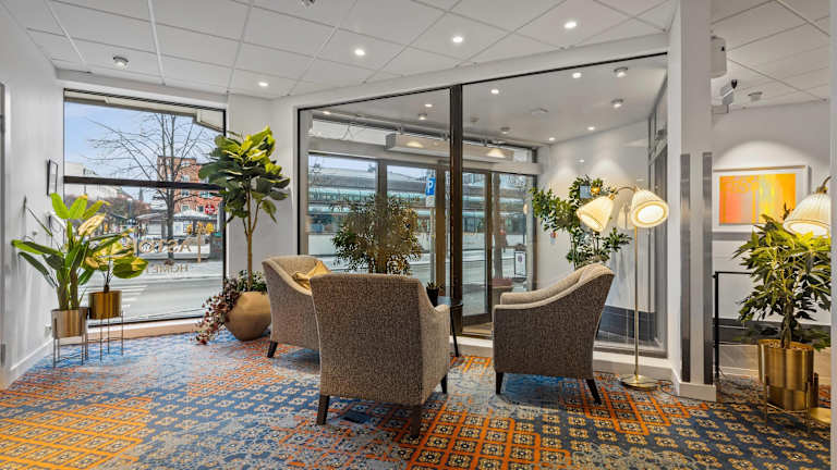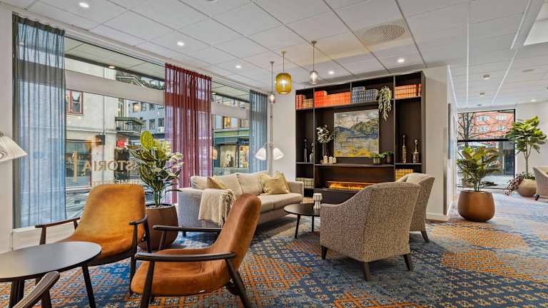 Das Clarion Collection Hotel Astoria befindet sich an der Hauptstraße von Hamar, der Torggata, und ist nur 2 Gehminuten vom Bahnhof entfernt. Die zentrale Lage ermöglicht es den Gästen, bequem die Sehenswürdigkeiten, Geschäfte und Restaurants der Stadt zu erkunden. Der Mjøsa-See ist nur 250 m entfernt und die Domruine von Hamar mit dem Komplex Domkirkeodden erreichen Sie in etwa 20 Gehminuten.