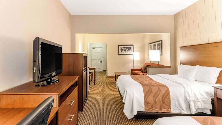 Das Hotel Quality Inn & Suites verfügt über 66 Zimmer und bietet eine heimelige Atmosphäre mit einem Kamin. Es besteht die Möglichkeit, das Auto in einer Garage (gegen Gebühr) oder auf einem Parkplatz zu parkieren. Das freundliche Personal an der Rezeption steht den Gästen bei Fragen zur Verfügung. Zu den weiteren Serviceleistungen zählen eine Gepäckaufbewahrung, ein Safe, ein Getränkeautomat, ein Wäscheservice und eine Münzwäscherei. Das Haus ist mit WLAN ausgestattet und bietet behindertengerechte Einrichtungen.