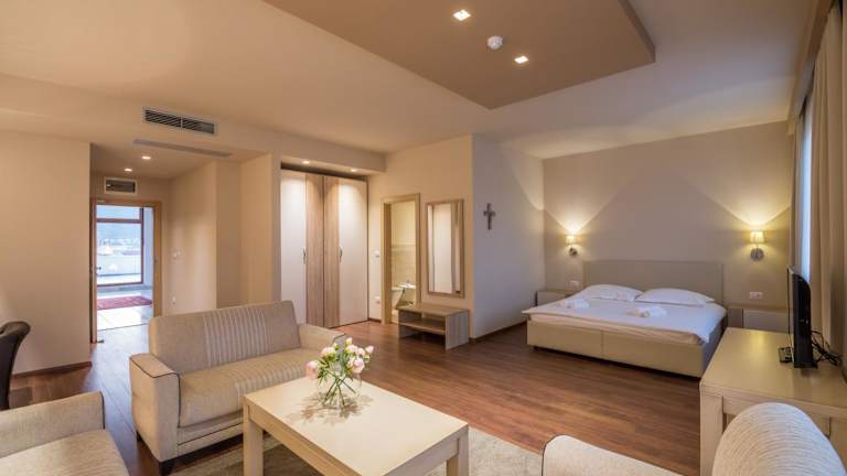 Das Hotel Quercus ist die ideale Wahl für Ihren Aufenthalt in Medjugorje. Genießen Sie den Komfort eines zentral gelegenen Hotels mit kostenfreiem WLAN und Parkplätzen. Das Buffet-Restaurant verwöhnt Sie mit einer Vielzahl von Speisen und das Frühstück ist im Preis inbegriffen. Die Zimmer sind klimatisiert und bieten modernen Komfort. Nutzen Sie die kostenlosen Konferenzräume und genießen Sie die Annehmlichkeiten der Bar und der Terrasse.
