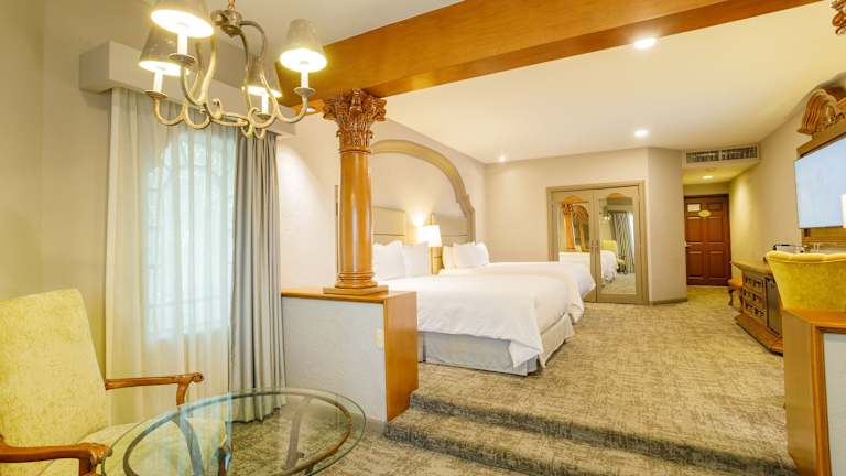 Die Zimmer sind geräumig und verfügen über eine individuelle Klimaanlage, Marmorbäder, Bademäntel, Hausschuhe und eine Auswahl an Kissen. Die Einrichtung umfasst ein Doppel- oder Kingsize-Bett, einen Safe, eine Minibar und ein Telefon mit Direktwahl. Zudem sind ein TV-Gerät mit Satellitenempfang und Wifi verfügbar. Es gibt auch rollstuhlgerechte Zimmer.