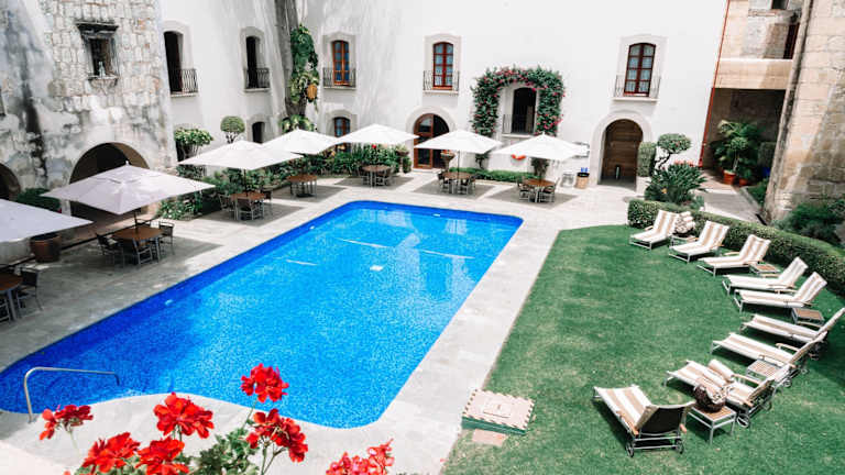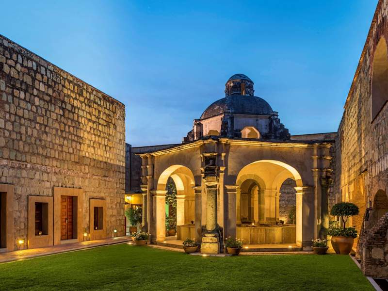 Das Quinta Real Oaxaca befindet sich im historischen Zentrum von Oaxaca de Juárez, nur wenige Straßen entfernt von Museen, Kirchen, Geschäften und Kunsthandwerkermärkten. Der nächste Busbahnhof ADO ist etwa 15 Autominuten entfernt, während der Golfplatz Vistahermosa und die archäologische Stätte Monte Albán in etwa 30 Minuten erreichbar sind. Die archäologische Stätte Mitla ist etwa 40 Fahrminuten entfernt. Der Flughafen von Oaxaca ist ca. 20 km vom Hotel entfernt.