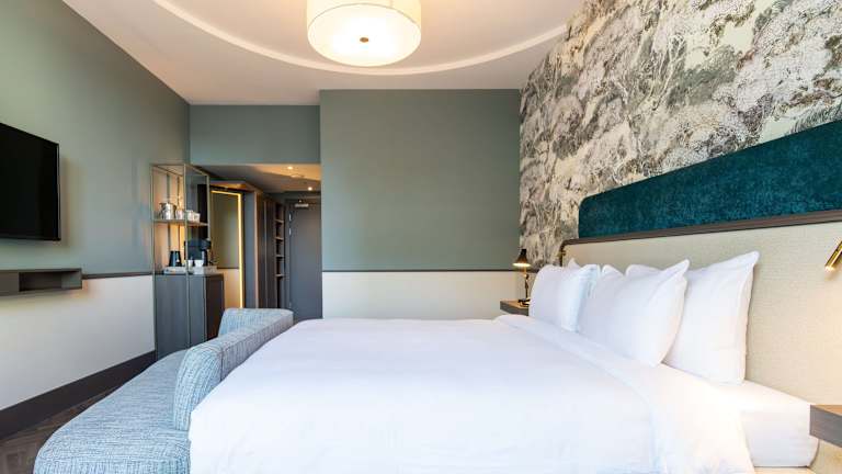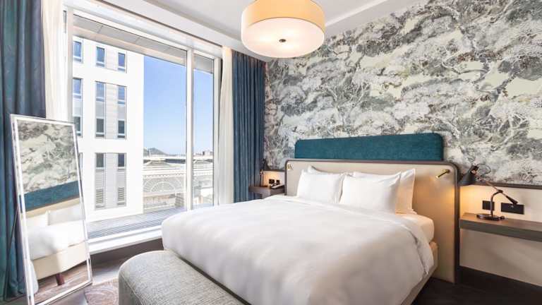 Die Zimmer sind in sanften Farbtönen gehalten und bieten eine Bequemlichkeit mit Balkon, Klimaanlage, Minibar sowie einem Fernseher mit Satellitenempfang. Badezimmer sind mit Fussbodenheizung ausgestattet und bieten persönliche Kosmetikartikel. Rollstuhlgerechte Zimmer sind ebenfalls verfügbar.