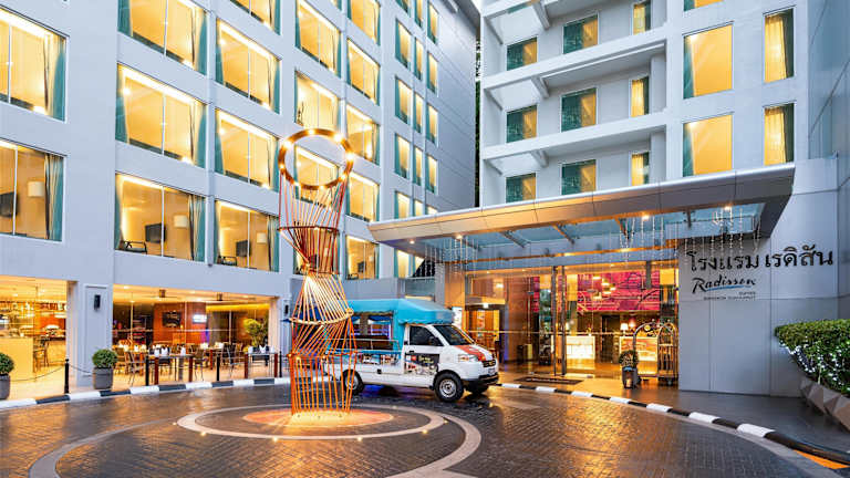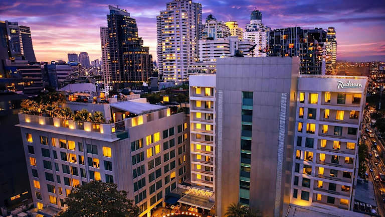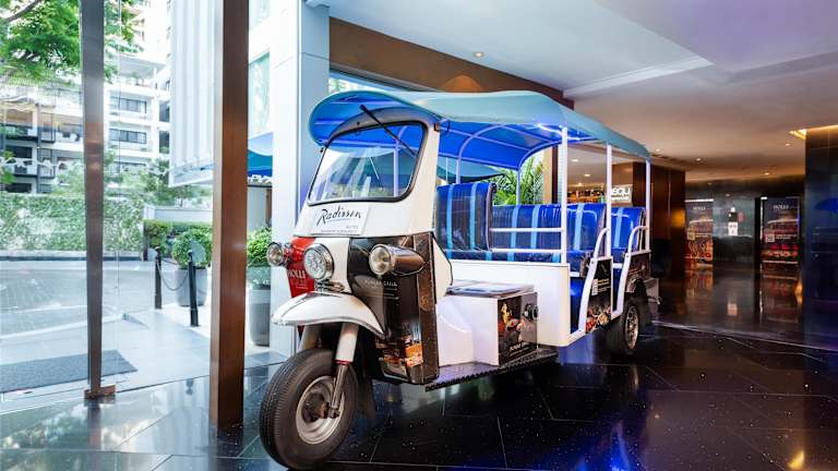 Das Radisson Suites Bangkok Sukhumvit hat 96 Zimmer auf 11 Etagen, die bequem mit einem Aufzug erreichbar sind. Das Haus bietet eine Gepäckaufbewahrung, einen Safe, eine Wechselstube sowie ein Business-Center mit Faxgerät und Projektor. WLAN ist in den öffentlichen Bereichen verfügbar. Ein Kamin sorgt für eine heimelige Atmosphäre und der TV-Raum steht ebenfalls zur Verfügung. Die Gäste können ihr Auto gebührenfrei in der Garage oder auf dem Parkplatz parkieren. Zu den weiteren angebotenen Dienstleistungen gehören ein 24h-Sicherheitsdienst, Babysitting, medizinische Betreuung sowie ein Transferservice. Die Rezeption ist freundlich und mehrsprachig, darunter auch deutschsprachiges Personal.