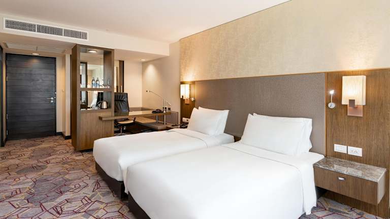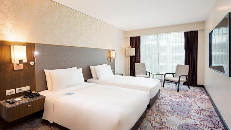 Die komfortablen Zimmer sind klimatisiert und verfügen über Teppichböden sowie grosse Fenster. Ausgestattet mit einem Doppelbett oder Kingsize-Bett, einer Kochnische mit Kühlschrank, Mikrowelle und Tee-/Kaffeekocher, sowie einem Safe, Minibar und Schreibtisch, bieten sie bestmögliche Bequemlichkeit. Das Badezimmer ist modern gestaltet und bietet sowohl eine Dusche als auch eine Badewanne, sowie Kosmetikartikel und Haartrockner. Rollstuhlgerechte Zimmer sind ebenfalls verfügbar.