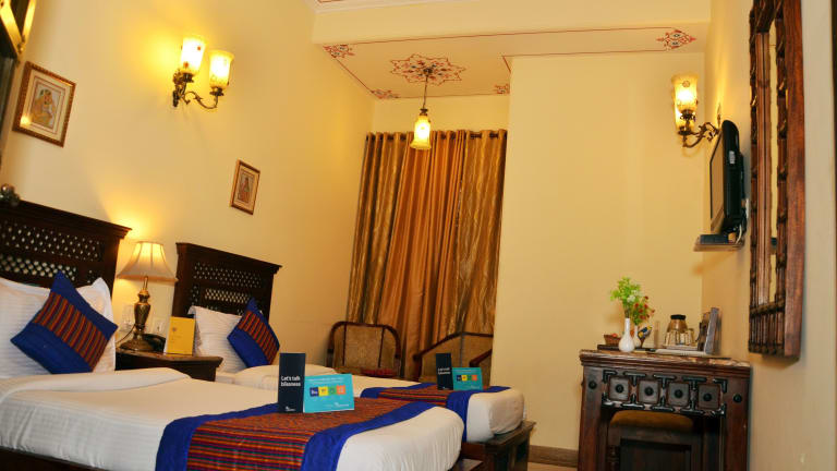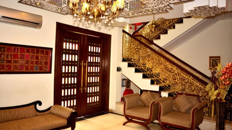 Das Hotel befindet sich auf dem Weg zum renommierten Amber Fort und dem Jal-Mahal-Palast in Jaipur. Es bietet einen beeindruckenden Blick auf das Nahargarh Fort.