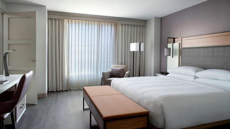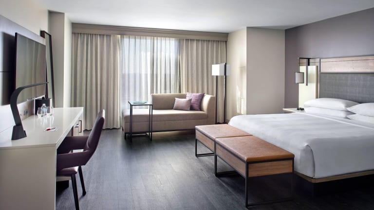 Die Zimmer sind mit Klimaanlage, einem Doppelbett, Sofabett, Safe und Minibar ausgestattet. Ein Kühlschrank, Tee-/Kaffeemaschine, Bügelset sowie ein 55-Zoll-TV mit On-Demand-Netflix und Hulu sind ebenfalls vorhanden. Die Badezimmer bieten eine Dusche sowie Haartrockner und Bademäntel. Es stehen auch rollstuhlgerechte Zimmer zur Verfügung.