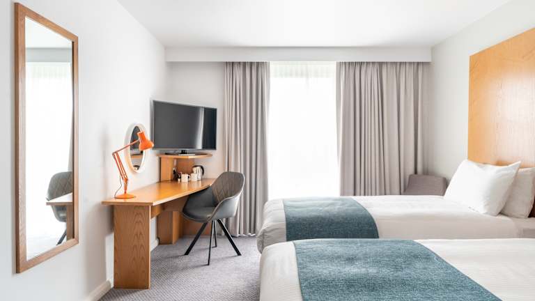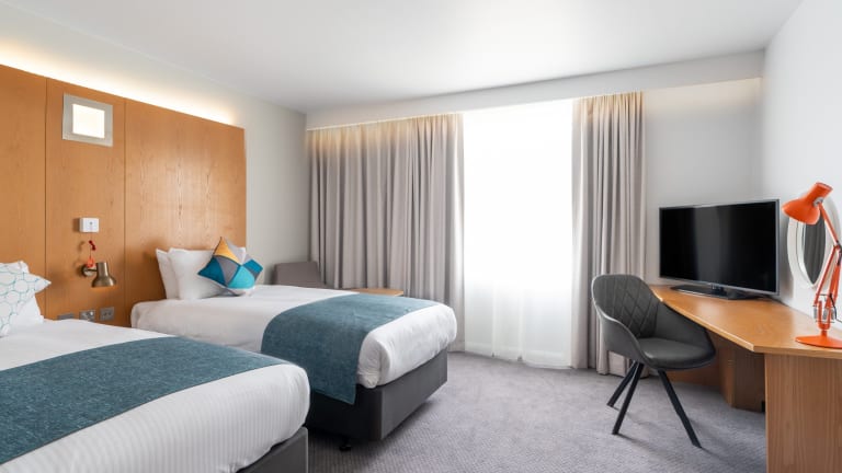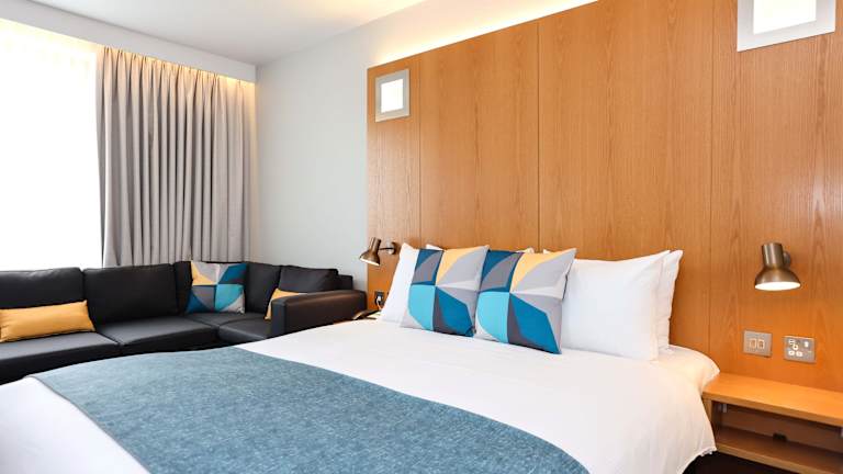 Das Hotel verfügt über 113 Zimmer auf 6 Etagen. Jedes Zimmer ist klimatisiert und bietet Annehmlichkeiten wie Hypnos Betten, eine Auswahl an Kissen, einen Haartrockner und eine ebenerdige Dusche. Zur weiteren Ausstattung gehören ein 43-Zoll-Smart-TV, USB-Ladestationen, ein Schreibtisch, ein Safe, ein Bügeleisen sowie Tee- und Kaffeezubehör.